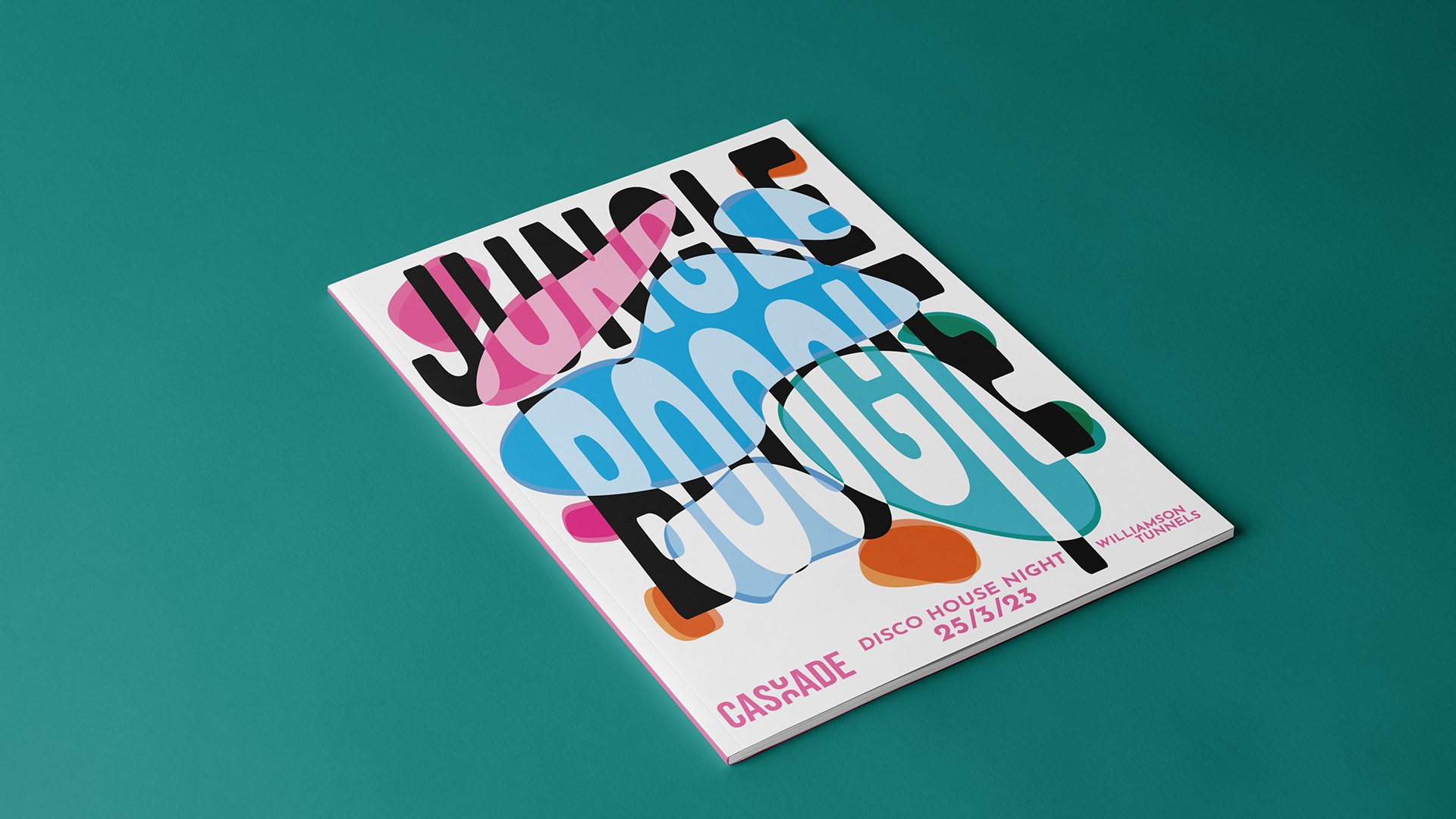 Promotional work for Jungle Boogie, a Disco House music event in Williamson Tunnels, Liverpool.